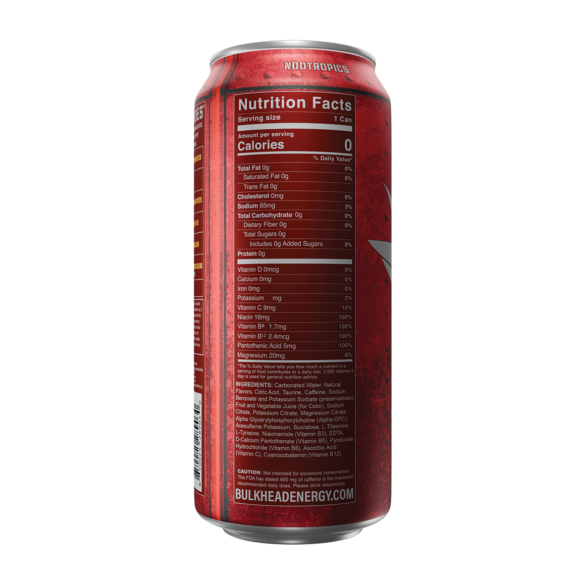 BULKHEAD ENERGY® USES NATURAL CAFFEINE (300MG PER CAN) ALONG WITH ITS NOOTROPIC BLEND. THIS COMBINATION CAN PROVIDE A CLEAN, LONG-LASTING ENERGY BOOST WITHOUT THE CRASH ASSOCIATED WITH SUGARY ENERGY DRINKS.